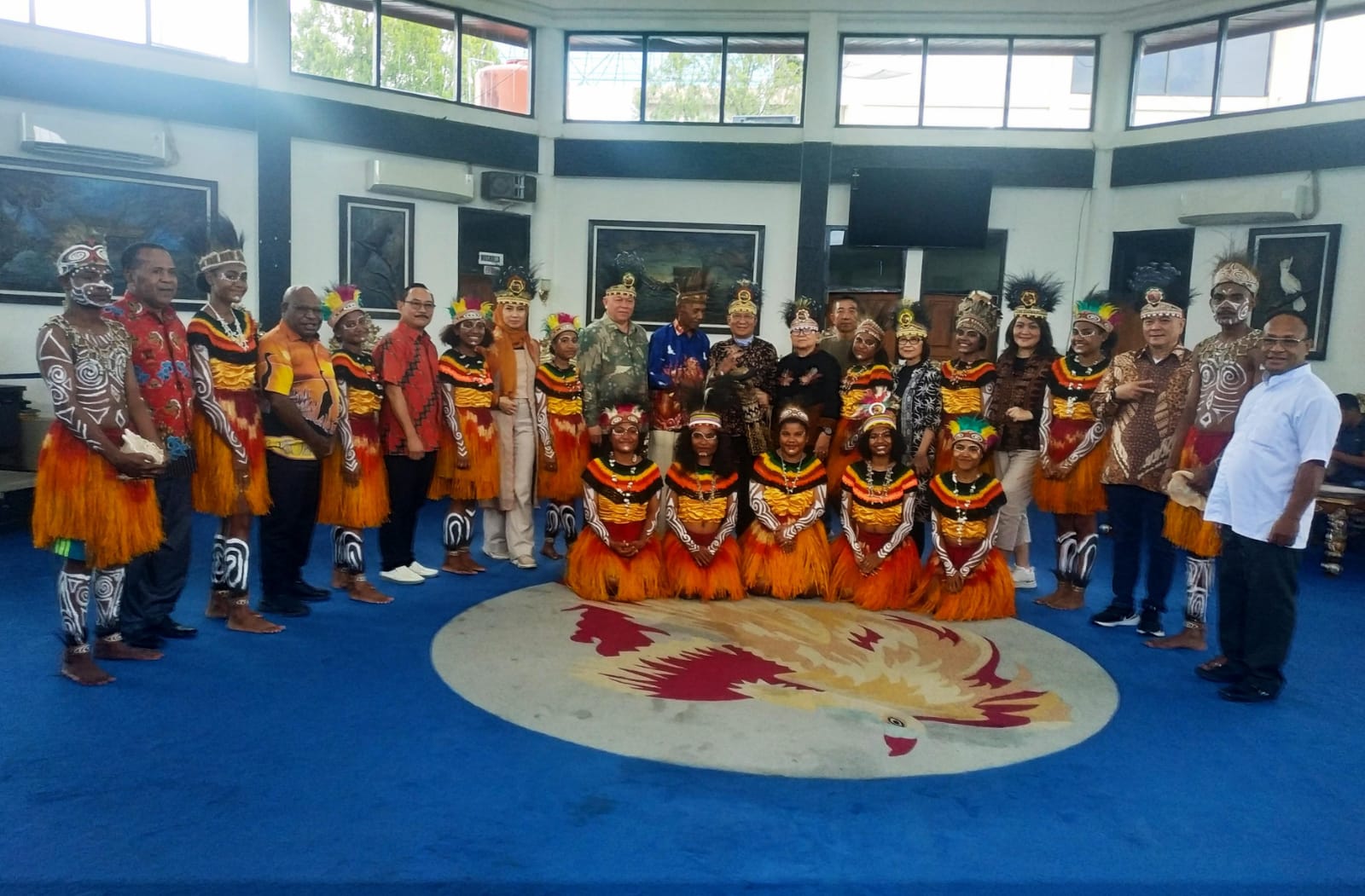 *Tiba di Sentani, Rombongan SKKP Disambut Tarian Daerah dan Penyematan Mahkota Kasuari*